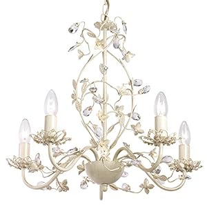 This antique brass light ceiling fitting with cream string shades creates a timeless look in any bedroom, living room, dining room or kitchen. Give your home a touch of antique glamour with this charming cream arm chandelier from our Marie Therese collection. Adorned with swathes of clear glass crystals.